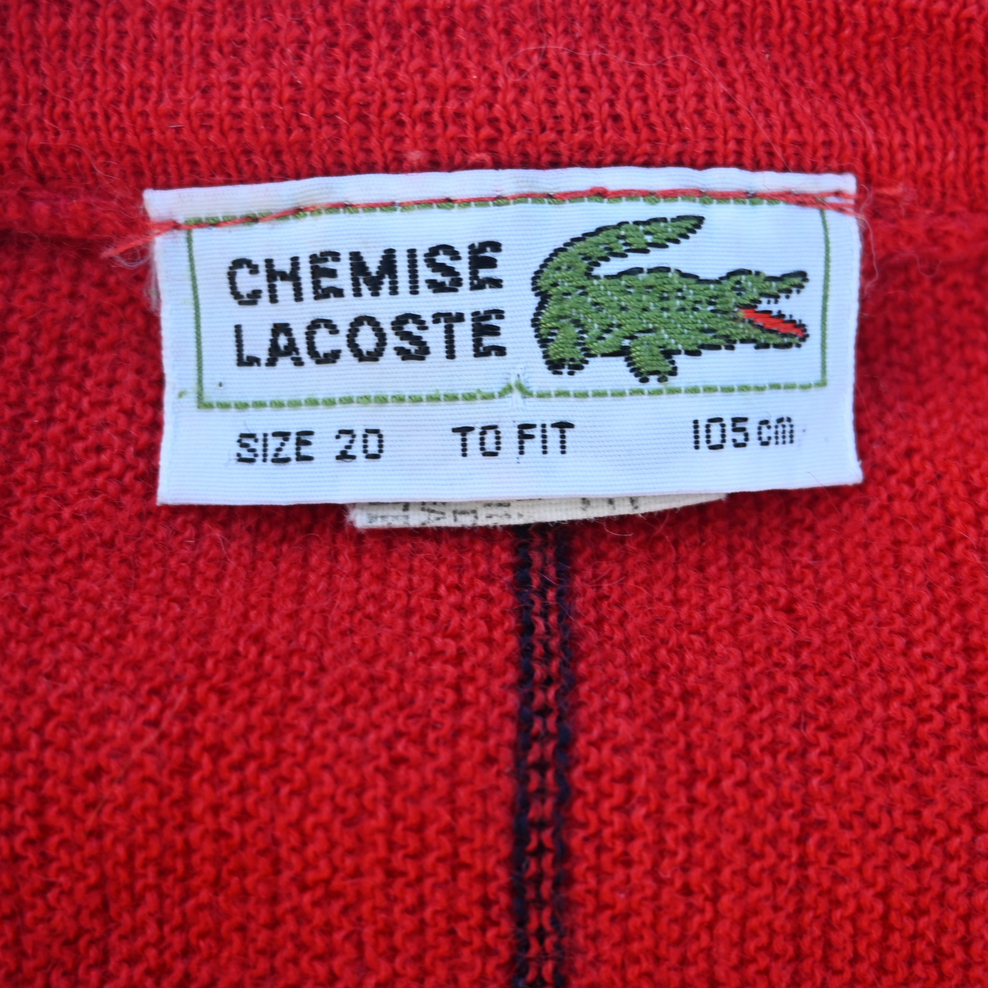 Vintage 'Chemise Lacoste' sweater in red with fine stripes.
